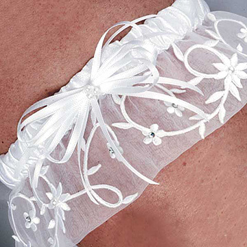 This gorgeous garter from our Sparkling Entwined Collection features a canvas of organza trim with an eternal pattern of swirling vines.
