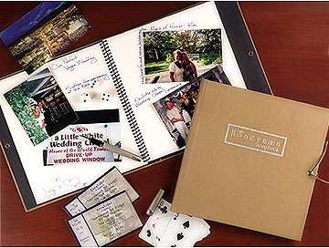 Create a lasting memento of your honeymoon with this natural-tone, spiral-bound scrapbook that closes with a stylish, leather tie. The 8 1/4" x 9 1/4" book comes personalized with a silver-tone plate featuring your names and wedding date.